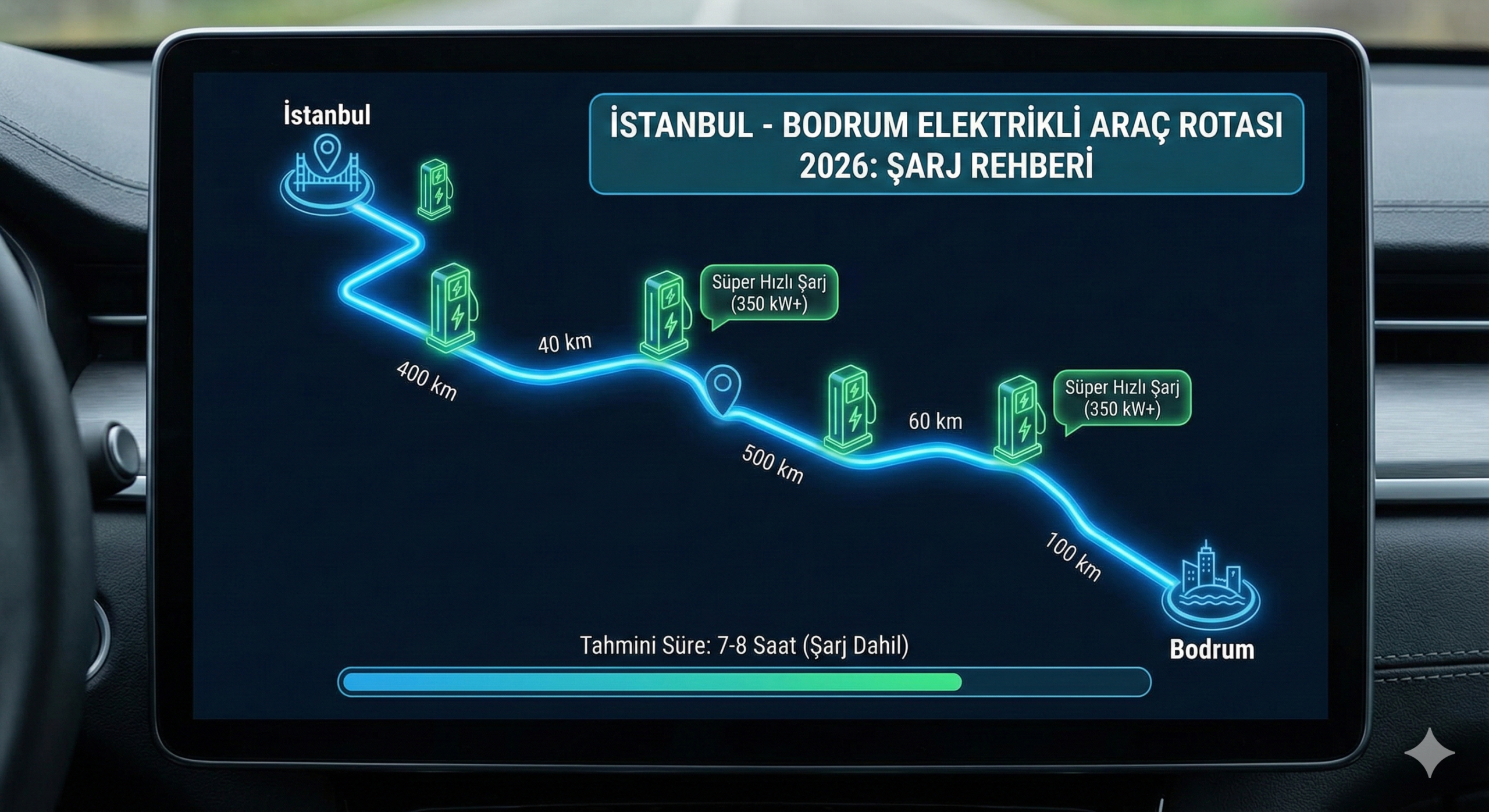 İstanbul'dan Bodrum'a elektrikli araçla gitmek artık çok kolay. 2026 güncel şarj haritası, mola yerleri ve…